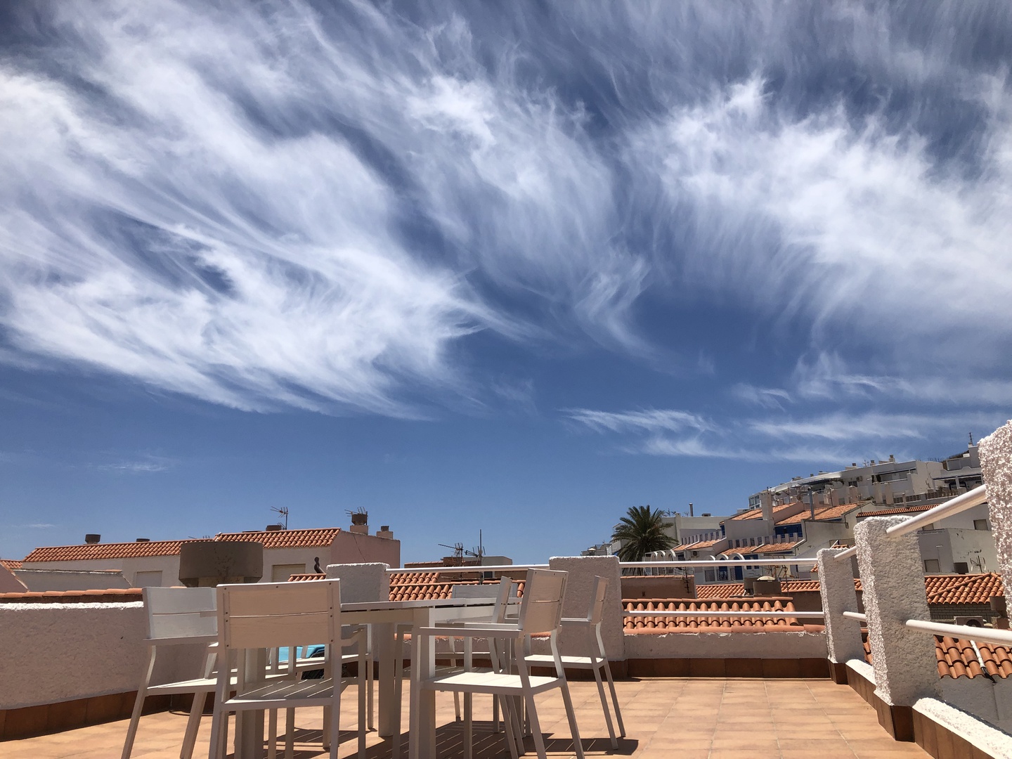 On the first floor there are two bedrooms with double beds, two further bedrooms with two and three beds, respectively, and a bathroom with shower. One of the bedrooms with double bed give access to a roofed terrace.
